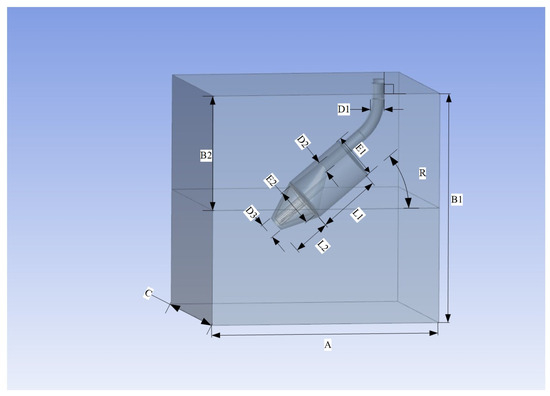 Constructing a fluid model for performance optimization involves representing the three-dimensional structure of the suction dredging device, including the reamer, connecting warehouse, and pipeline, within the fluid domain. The device shell, which isolates the internal components from the water, creates a hollow structure within the fluid domain. Thus, it is crucial to include this part of the fluid domain in the model. Figure 2 illustrates the final determination of the fluid domain model. Once determined, the model will be imported into Fluent 2023R1 for preprocessing and processing. This involves setting boundary conditions, defining fluid properties, meshing the model, and specifying solver settings to simulate fluid flow behaviour accurately. By leveraging computational fluid dynamics (CFD) simulations in Fluent, engineers can analyse the performance of dredging devices, optimize their design parameters, and improve their efficiency in desilting operations. The fluid domain model dimensional parameters in Figure 2 are shown in Table 1.