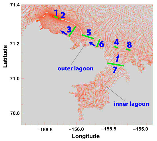Because of the lack of data, there have been very few numerical experimental studies on the hydrodynamics of such a coastal lagoon system—much of the arctic study has been heavily focused on the continental shelf, Bering Strait, and deep ocean basins. Part of the reason is that numerical models cannot be validated unless accurate bathymetry data are available which we were able to provide in Elson Lagoon for the model application.