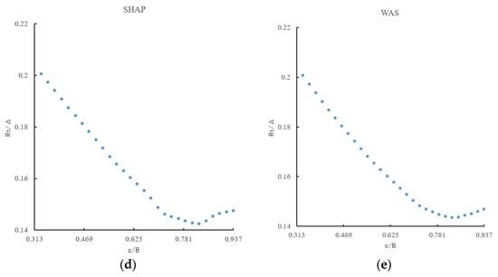 Five proxy models, the polynomial response surface model (PRS), Kriging model (KRG), SHAP model (SHAP), and weighted average proxy model (WAS), were used to fit the numerical results calculated in Table 6. There are 30 data points selected. The fitting results and fitting errors of each proxy model are shown in Figure 13.