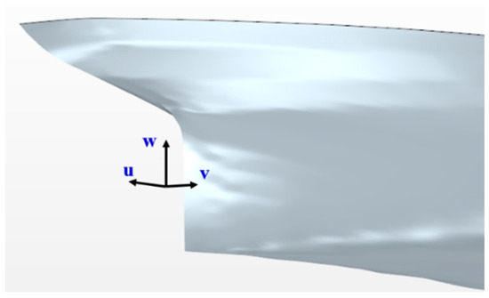 The RSM was assessed using the hull form of the Ryuko-maru, a 200,000 DWT tanker built in Japan with a Cb value of 0.83. CFD validation data for this vessel, made publicly available by Namimatsu et al. [12], were utilized. The wake distribution of the ship was also measured at the full scale using a five-hole pitot tube. Figure 1 illustrates the 3D model of the Ryuko-maru, while Table 1 provides its principal dimensions.