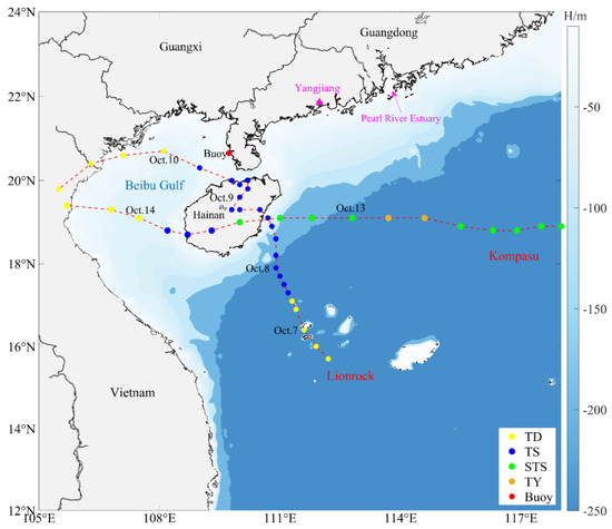 - Xie, L.; He, C.; Li, M.; Tian, J.; Jing, Z. Response of sea surface temperature to typhoon passages over the upwelling zone east of Hainan Island. Adv. Mar. Sci. 2017, 35, 8–19. [Google Scholar]