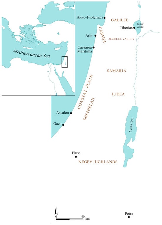 The ancient harbor has been the focus of academic research for decades, with significant progress witnessed in the excavation and analysis of particular sites and, through them, in understanding the level and quality of micro-regional connectivity more broadly. Specifically, numerous studies on the harbors of the Israeli coast—comparative and diachronic in nature—were conducted during the 1980s and 1990s [1,2], examining the development of the use of anchorages and the construction of harbor facilities from the Bronze Age to the Middle Ages. The study of harbors and anchorages of all periods has continued since, with a diachronic update appearing recently [3].