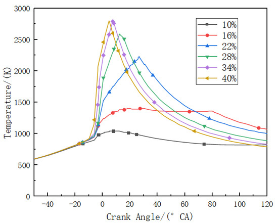 The cylinder temperature at different diesel energy ratios.