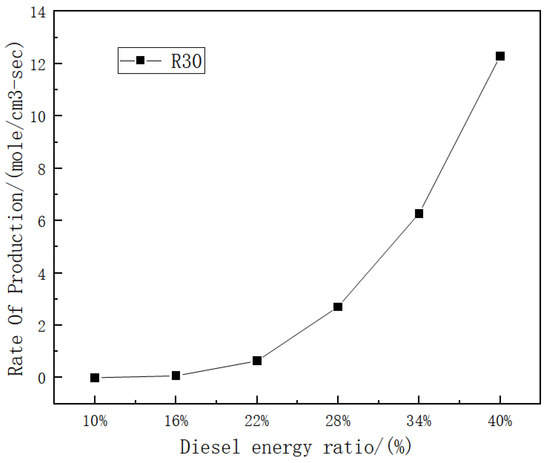 The reaction rates of elementary reaction R30 at different diesel energy ratios.