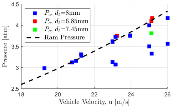 and ram pressure under different vehicle cruise velocities and nozzle diameters.