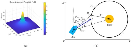 As analyzed in Section 4, the simulation of the USV’s buoy circumnavigation control algorithm was conducted in Matlab 2020a. The design of the parameters in Equation (5) during the simulation is as shown in Table 4: