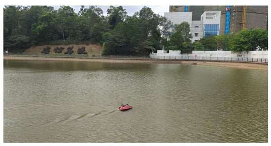 To validate the practical navigation and obstacle avoidance efficacy of the USV, field tests were conducted at the Jinan University Zhuhai Campus, situated at the Day Moon Lake, as depicted in Figure 23.
