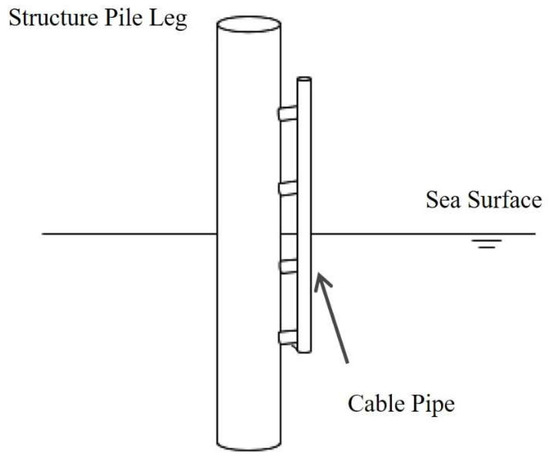 Schematic of sea ice interaction with offshore substation structure with a cable pipe.