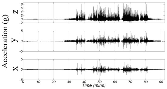 Examples of accelerations time series of HSPCs in vertical, lateral and fore–and–aft directions [21].