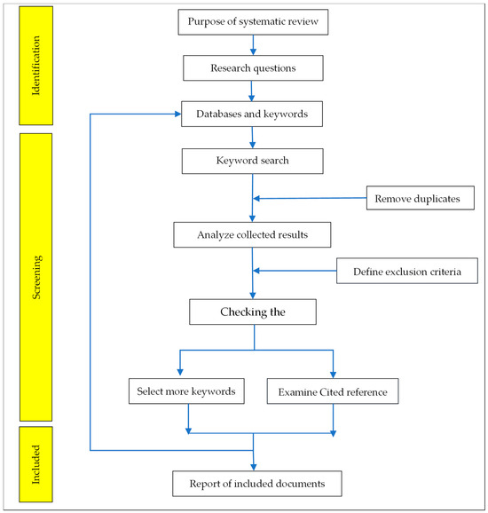 This systematic review follows the updated version of the Preferred Reporting Items for Systematic Reviews and Meta-Analyses (PRISMA) method, presented by Page et al. [34], based on a 27-item checklist. Figure 3 indicates the searching strategy for this review, which was a multi-step process of searching in different databases. The main research questions, inclusion and exclusion criteria, and defined keywords will be discussed later.