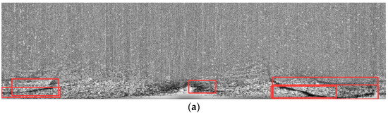 LabelImg is an open-source image annotation tool designed specifically for creating bounding boxes and assigning labels to objects in images. Developed primarily in Python and utilizing the Qt framework for its Graphical User Interface (GUI), LabelImg provides a friendly operating platform for efficiently annotating large datasets for object detection and localization tasks. Bounding boxes around objects can be quickly and precisely drawn with LabelImg. The annotations in various formats, including the PASCAL VOC XML format, YOLO, and CreateML, can also be exported correspondingly. Labelimg was used here to mark oil film targets in marine radar images, as shown in Figure 6.