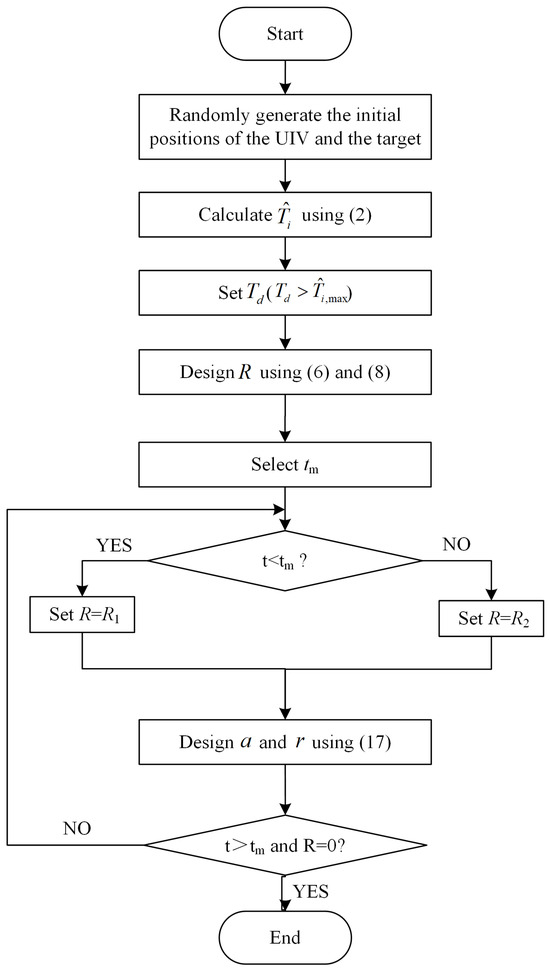 The entire process flowchart of the intelligent underwater vehicles adopting the attack time segmentation control strategy with evasion maneuvers is depicted in Figure 4.
