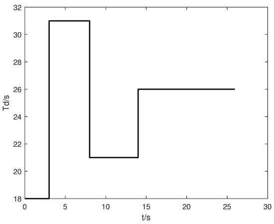 Here, , , and . and are mainly used to set the amplitude of the expected distance. is a given trigonometric frequency that determines the frequency of the amplitude change of . The above equation uses the sign function to construct a rectangular wave pattern of step-wise changes, and by combining Equations (7) and (5), we can derive