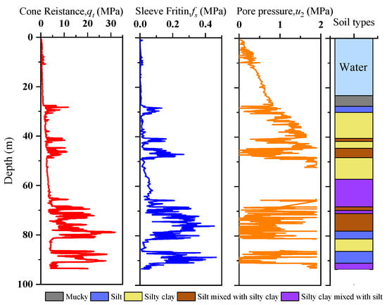 - Yang, Z.; Liu, X.; Guo, L.; Cui, Y.; Su, X.; Ling, X. Soil classification and site variability analysis based on CPT—A case study in the Yellow River subaquatic delta, China. J. Mar. Sci. Eng. 2021, 9, 431. [Google Scholar] [CrossRef]