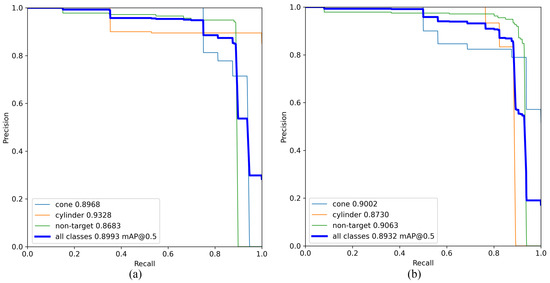 mAP: mAP represents the overall performance of a model in detecting different categories of objects, comprehensively reflecting the model’s accuracy and recall capability in object detection tasks. It is a widely adopted evaluation metric in object detection tasks. “@0.5” denotes the mean average precision at an IoU threshold of 0.5, while “@0.5:0.95” represents the average mAP value over a range of IoU thresholds from 0.5 to 0.95.
