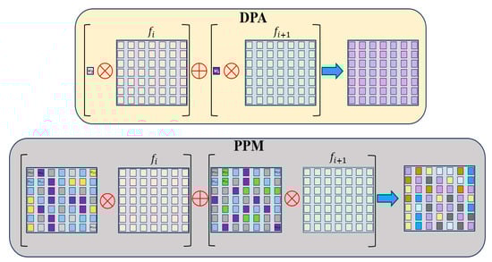 Here, represents the bilinear interpolation down-sampling operation. In the bottom-up fusion process, each fusion line will be input into the PPM to calculate the weight coefficients of each pyramid feature map at the same position. The calculation processes are as follows: