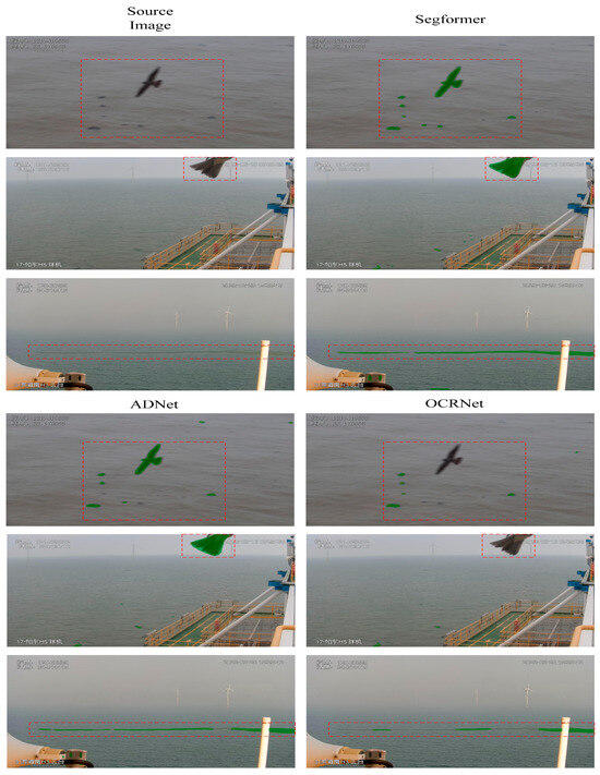 In scenarios 1 to 3, we focus on assessing the segmentation performance when faced with small algae targets amidst the backdrop of larger algae targets. This evaluation can offer insights into the models’ ability to distinguish between different sizes of algae. Moving on, scenarios 4 to 8 discuss the performance in complex environments, including sunlight interference, sea waves, and foggy conditions. By evaluating the models’ responses to these varying environmental factors, we can acquire an understanding of their adaptability and robustness in actual applications. The above comparisons not only consider the models’ overall accuracy but also evaluate their stability in the presence of strong disturbances.