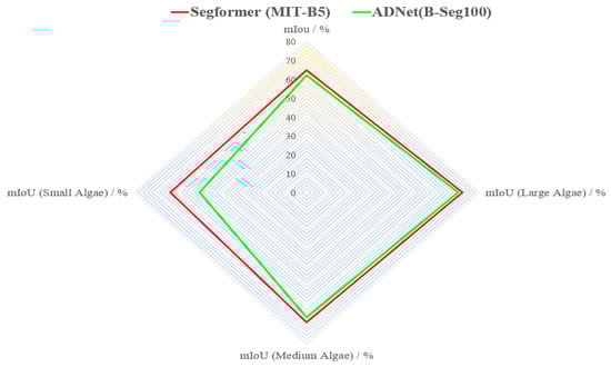 In Figure 21, CNN-based segmentation methods like STDC and DDRNet have shown notable speed advantages; however, it is important to acknowledge that their performance often falls behind transformer-based approaches like Segformer. Transformers, known for their ability to capture long-range dependencies, demonstrated robust resilience to interference even in complex environments. When confronted with the intricate and dynamic marine conditions, the algae segmentation model must integrate these critical capabilities inherent in transformer structures.