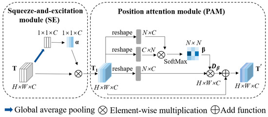 In general, the SE strengthens the input features by integrating all channels, while PAM selectively aggregates the features of each position through the weighted sum of features at all positions. The combination of the two can model the original features from both channel dimensions and spatial dimensions so as to extract more useful features more effectively.