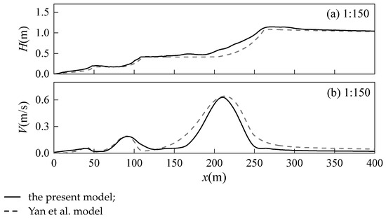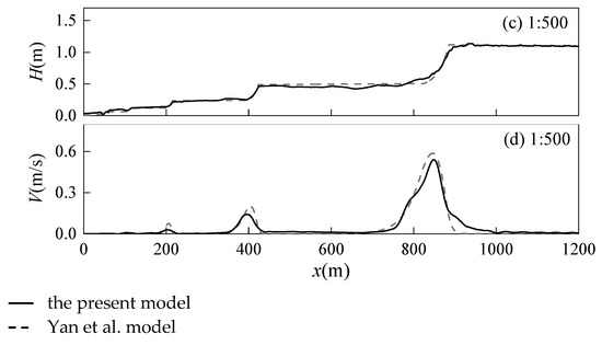 Comparison of calculation results of different models for different slopes: (a,b) 1:300 slope and (c,d) 1:500; Yan et al.: [10].
