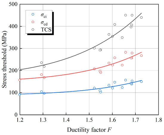 Variation in stress threshold with TCS. (a) Crack initiation stress; (b) Crack damage stress.