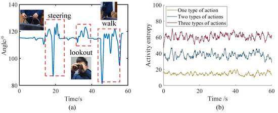 BFI signal characteristics corresponding to different driving behaviors (a) and results of activity entropy calculations for different numbers of active types (b).