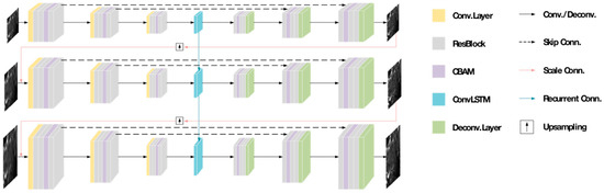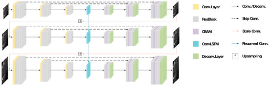 - Our proposed network builds upon the multi-scale recurrent neural network, with the introduction of the CBAM attention mechanism. This module enables attention to be focused on the latent features of both the channel and spatial dimensions;