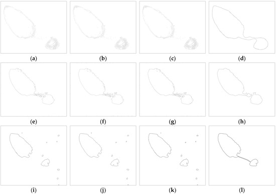 The edge detection algorithm used in this study is GVF-Snake. Snake refers to the active contour, which is affected by the internal force of the curve itself and the external force calculated from the image, making the curve adapt to the contour of the target object or the characteristics of the image [57,58]. Later, some scholars further proposed the GVF-Snake algorithm, which improved the form of external force, reduced the sensitivity of the algorithm to the initial contour, and stably converged to the concave contour [59].