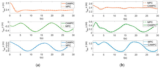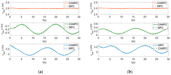 End-effector position of Case 2: (a) Positions of the left end effector; (b) Positions of the right end effector.
