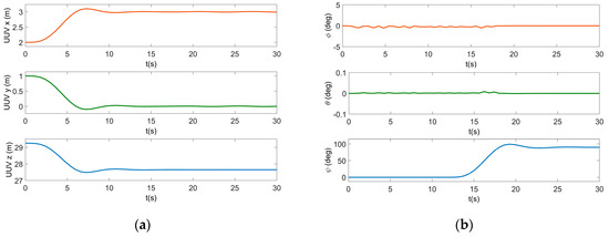 UUV poses: (a) Positions of the vehicle; (b) Euler angles of the vehicle.