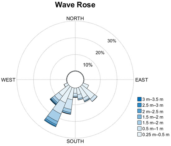 Wave rose diagram of mean annual significant wave heights of point P4, offshore of Genoa’s port breakwater.
