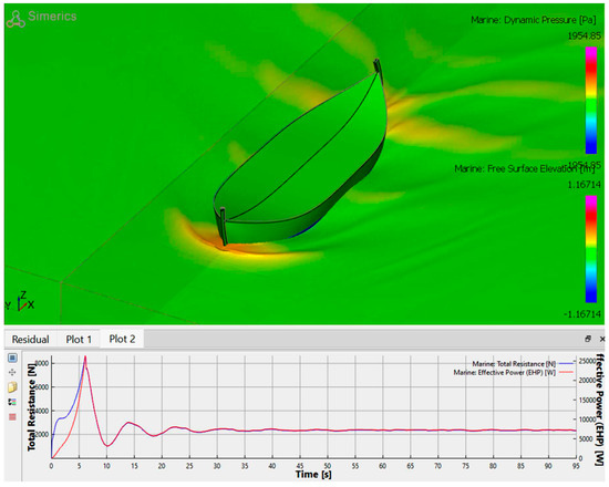 Figure 3. Computational fluid dynamics (CFD) analysis: resistance evaluation upon which the geometry of the sail was configured (Orca3D®/SimericsMP).