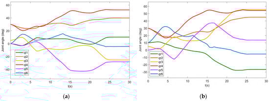 Angles of the manipulators: (a) the left manipulator; (b) the right manipulator.