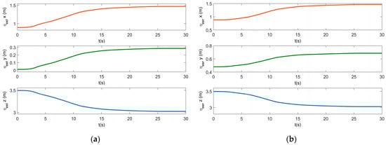 Positions of the end effectors in the inertial frame: (a) the left end effector; (b) the right end effector.