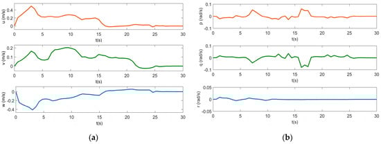 Velocities of the vehicle: (a) the vehicle’s linear velocity; (b) the vehicle’s angular velocity.