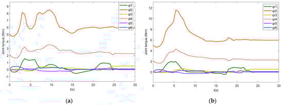 Torques of the manipulators: (a) the left manipulator; (b) the right manipulator.