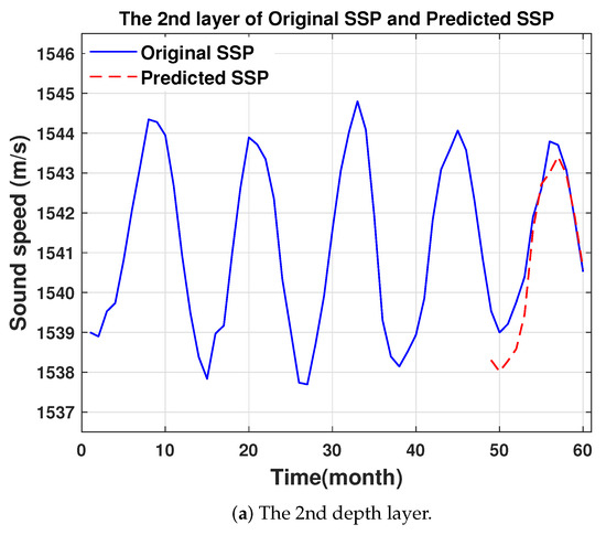 Following model training, the final column of the hierarchical training output set is employed as the model input to forecast future SSP. During layered validation, considering the first depth layer as an illustration, the model input is . The predicted SSP data for the first layer at the subsequent time step is denoted as , where represents the predicted sound speed value in the first depth layer.