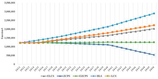 - From 2040 onwards, the ZCPS demonstrates a superior carbon reduction performance compared to Scenario 2. By 2050, the ZCPS achieves an additional CO2 reduction of 716,872 tons compared to the EZCPS, accounting for 32.35% of the total carbon reduction. A comparison of the development pathways reveals that beginning in 2030, the proportion of long-distance cargo ships switching to LNG fuel is 5% lower in the ZCPS than in the EZCPS, while the proportion switching to methanol fuel is 5% higher. These findings suggest that the emission reduction benefits of promoting low-carbon fuels in high-emission ships will increase over time, emphasizing the need to advance the use of low-carbon fuels in high-emission vessels as early as possible.