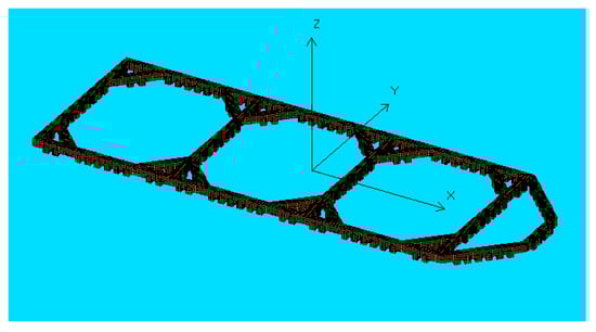 Based on the main parameters of the platform, the geometric model of the main structure is established using ANSYS-APDL 18.0. After completing the modeling, the geometric model is meshed with a mesh size of 0.3 m. Subsequently, the hydrodynamic calculation model of the main structure is exported from ANSYS-AQWA 18.0, as shown in Figure 10. This model is then used to perform a frequency domain response analysis of the main structure.