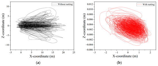 Time history result of the planar motion: (a) without netting; (b) with netting.