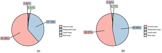 In Figure 1a,b, the percentages by type of cargo for the ports of San Antonio and Valparaíso are shown.