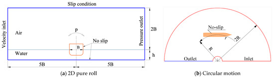 Fluid domain and boundary conditions for (a) 2D pure roll and (b) circular motion.