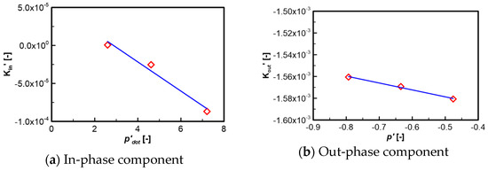 For the harmonic motions, pure roll tests of the midship section are carried out. Fourier’s analysis is applied to analyze the resulting roll moment to derive the in-phase and out-phase components. The roll moment of the ship is obtained by integrating the roll moment of the section over the length of the ship. Figure 16 shows the in-phase and out-phase components of the roll moment for the midship section of the KCS. The added roll moment and roll damping are estimated through the linear approximation of the in-phase component and out-phase component, respectively.