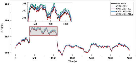 - Under the complex operating conditions of the engine, the predictive performance of each model generally deteriorated; however, the CNN-LSTM-MLA model continued to exhibit the best performance, which further demonstrated its advantages in handling complex conditions.