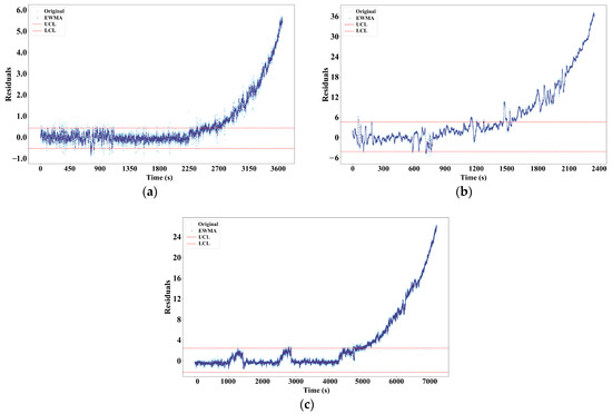 - The operational status of the engine can be monitored in real time, and potential faults can be predicted by analyzing the residuals between actual inputs and the expected EGT using the EWMA control chart. The experimental results of the abnormal operation cases demonstrate that this method can promptly detect anomalies in the engine under various operating conditions and offer support for predictive maintenance of marine diesel engines.