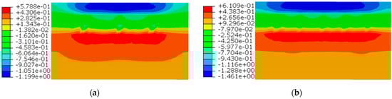 When exploiting NGHs through depressurizing production, the pore pressure of the formations decreases, and the effective stress of the formations increases. However, the strength of the NGH reservoir declines with the decomposition of NGHs, and the effective stress that can be borne by the reservoir also decreases. The strength difference causes a local stress concentration at the decomposition front of the NGHs. Under this high effective stress, the NGH decomposition zone is squeezed and deformed, which triggers the settlement of overlying strata and even submarine landslides. As shown in Figure 8b, the underlying strata are lifted. This is because the NGH decomposition zone cannot compress the underlying strata; additionally, NGHs near the lower boundary of the reservoir are decomposed to a higher degree, and the reservoir strength is weakened more seriously.