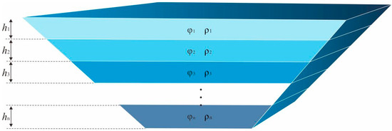 Stratigraphic volume model. φ represents the porosity of sandstone; ρ represents the density of CO2; h represents the thickness of the calculation unit.