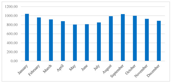 Figure 10. The lowest average price was recorded in May 2023 at USD 804.69 and the highest in January at USD 1040.25.