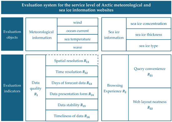 Based on relevant research and the characteristics of Arctic meteorological and sea ice information, this paper presents an evaluation system for the service level of Arctic meteorological and sea ice information websites from both quantitative and qualitative aspects, as shown in Figure 1.