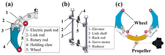Locomotion mechanics: (a) the mechanical holding mechanism; (b) the lifting mechanism; (c) the rotary mechanics.